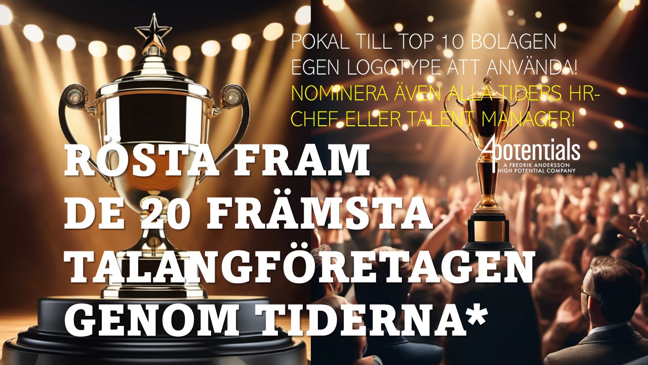 Vi vet att det är inte alla… tiders företag – men de flesta brukar säga att talangmarknaden som den ser ut idag skapades 2010. Det var först då vi insåg att talent management handlar om så mycket mer än studenter, arbetsmarknadsdagar och Employer Branding rankingar. Nuförtiden vet alla att det är viktigare att lyckas rekrytera och behålla stjärnorna. Därför väljer vi att utse den moderna tidens talangföretag och ärligt talat så är det få bolag som heter samma sak som de hette 2000. Det i sig är en utmaning som vi kommer belysa i den rapport vi på 4potentials även tar fram.